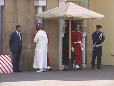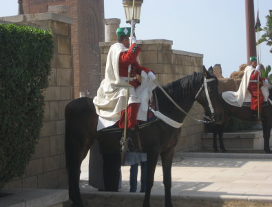 7. April 2011Tatsächlich wurde ich kurz vor 7 Uhr wach, ohne Wecker - wahrscheinlich war ich doch aufgeregt. Schon vor dem Frühstück versuchte ich, an der Rezeption Geld zu wechseln, leider ging es nicht. Aber die Bank gleich um die Ecke hatte ab 8.30 Uhr auf. Also frühstückten wir erst einmal. Der Frühstücksraum war orientalisch eingerichtet. Wir aßen an winzigen viel zu niedrigen Tischen und saßen auf dick gepolsterten Bänken - das war nicht gerade bequem, aber wie heißt es so schön: "Andere Länder andere Sitten". Wir werden uns daran gewöhnen.Das Buffet war, wie wir später feststellen mussten, für marokkanische Verhältnisse üppig: Tomaten, Oliven, Gurken, Butter, Baguette, Pfannkuchen, Marmeladen, Schmierkäse und eine magere Wurst. Auf der Bank nun brauchten wir länger als gedacht. Der Umtausch war sehr aufwendig, unsere Pässe wurden kopiert und dann mühsam der Kurs erfragt. Brigitte wurde schon nervös, denn schließlich wollte unsere Gruppe zur Besichtigung der großen Moschee Hassan II aufbrechen. Aber wir waren rechtzeitig im Hotel zurück, unsere 200 Euro waren in 2160 Dirham gewechselt, und wir hatten sogar schon die ersten Schritte in der vom morgendlichen Berufsverkehr fast überlasteten Stadt getan. Hier war sie nicht besonders schön, ganz anders die große Moschee von Casablanca. Sie ist weit ins Meer hinein gebaut. Die Anlage ist eindrucksvoll. Entlang der vielen Nebengebäude nähern wir uns der eigentlichen Moschee, sie wurde erst 1993 fertiggestellt, ist aber im traditionellen maurischen Stil errichtet - allerdings ausgestattet mit modernster Technik. Das quadratische Minarett gilt als das höchste der Welt und ist mit grünlichen Keramik-Mosaiken kunstvoll dekoriert. Auch Nicht-Muslime können die Moschee gegen 120 Dirham Eintritt außerhalb der Gebetszeit mit einer Führung besichtigen. Ausgestattet mit einem Pepper und einer Plastiktüte für die Schuhe, die wir natürlich bei der Besichtigung des Gebetsraumes, - oder muss ich sagen, der Gebetshalle? - ausziehen mussten. Die wunderbare auf verzierten Säulen ruhende Decke besteht aus geschnitzten Zedernholzkassetten. Das ganze Dach läßt sich aufschieben, so dass Sonnenlicht den Raum erhellt. Wir waren zu früh am Morgen hier, so lag der Gebetssaal im Halbdunkel, denn obwohl mit Sparlampen bestückt, waren von den prachtvollen Leuchtern aus Muranoglas nur wenige eingeschaltet. Zwischen zwei Gebetsteppichen teilt ein bei unserer Besichtigung leeres Wasserbecken den Raum. Die kunstvolle Mosaikverkleidung des Bodens wird durch mehrere Glasböden unterbrochen, durch die man in die unterirdischen Hammams sieht. Obwohl der Gebetsraum mit seiner handwerklich hervorragend gearbeiteten Ornamentik eindrucksvoll ist, wirkt er auf mich kalt. Vielleicht fehlen einfach die 25000 betenden Menschen. Sollte der Innenraum nicht ausreichen, so haben noch 45000 Gläubige auf dem Vorplatz Platz. Mit der Besichtigung der Moschee und einem kurzem Fotostop vor "Ricks -Cafe" endete unsere Besichtigung von Casablanca, und wir machten uns mit unserem Bus über die Autobahn auf nach Rabat. Utes Vorschlag, die Besichtigung in Rabat mit einem Führer zu beginnen, fand die Zustimmung der Gruppe. So stand um 14.00 Uhr Abdessamat in der Halle unseres Hotels. Er spricht sehr gutes Deutsch, kennt die Wachen am Palasttor, so dass Mohammed, unser Fahrer, mit dem Auto in das mehrere Hektar große Palastareal fahren durfte. Der Palast ist nicht zu besichtigen, in gebührenden Abstand darf die Palastwache in ihren roten Uniformen fotografiert werden. Der Palastbereich ist eine eigene Stadt, nachts verschlossen und frei vom normalen Autoverkehr, was die großen breiten Straßen etwas unsinnig erscheinen lässt. Mit Moscheen, Schulen, Kindergärten, Sportplätzen, Wohnungen und Einkaufmöglichkeiten werden den Angestellten außer der Arbeit auch besondere Privilegien geboten, die sie loyal gegenüber ihrem König machen. Ganz anders und viel entspannender nach der organisierten Pracht war der Spaziergang durch die Nekropole Chellah. Unter wild wachsenden Pflanzen verstecken sich Reste alter Römerbauten, verfallene Moscheen und ungepflegte Grabhäuser. Dieses ummauerte Paradies ist von Störchen in Besitz genommen worden, die klappernd in ihren Nestern auf den Bäumen und Ruinen sitzen. Schon von Weitem leuchtet das große grüne Dach des Mausoleums für Mohamed V. Die Tore in der alten ockerfarbenen Mauer werden von Soldaten in leuchtend roten Uniformen auf stattlichen Pferden bewacht. Das weiße Mausoleum steht hoch über dem Platz. Wie viele marokkanische Familien stiegen wir die breite Marmortreppe hinauf, vorbei an den großen fein gearbeiteten Lampen aus goldfarbenen Metall. Von oben ist der Blick über den Platz mit den Säulenstümpfen hinüber zum Wahrzeichen der Stadt, dem alten unvollendeten Hassanturm und weiter über die Stadt sehr schön. Im Innern betraten wir das Monument auf einer umlaufenden Galerie. Auf dem glänzenden blauen Steinfußboden steht der weiße Marmorsarg Mohamed V. Die kleineren Särge in den Ecken beachten wir kaum, eher den an der Mosaikwand auf einem Teppich sitzenden Iman, der aus dem Koran vorliest. Unsere Führung endete nach einem kurzen Gang durch die Gassen der Medina im Kaffee Maure bei einem Pfefferminztee. Von der schönen Terrasse genossen wir den Blick über den Fluss Bou Regreg hinüber nach Salé, der Schwesterstadt von Rabat. Einen längeren Spaziergang durch die Altstadt werden wir morgen machen. Für heute ist unser Bedarf an Neuem gedeckt und wir sind froh, am Abend gemeinsam mit anderen Mitreisenden bei unser ersten marokkanische Tajine und einem marokkanischen Rotwein den aufregenden ersten Tag in Marokko beschließen zu können. |