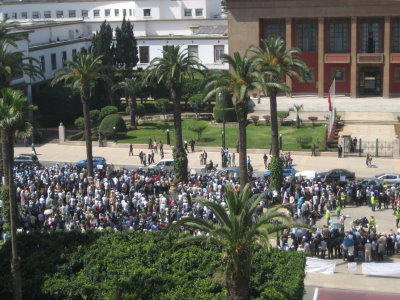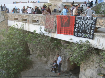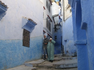 8. April 2011Heute mussten wir keinen Wecker zu stellen, wir wollten erst um 12 Uhr starten.Es war also nach dem Frühstück Zeit, allein auf Entdeckungsreise in Rabat zu gehen. Durch die gestrige Stadtführung hatten wir einen guten Überblick und liefen zielstrebig von unserem Hotel "Balima", das gegenüber dem Parlament liegt, auf der breiten Straße Mohamed V zur großen Stadtmauer. So früh am Morgen öffneten die Geschäfte unter den Kolonaden gerade, nur wenig Leute waren unterwegs, und wir konnten uns ohne Gedränge die Angebote anschauen Auf dem Rückweg zum Hotel dagegen mussten wir aufpassen, den vielen Straßenhändlern nicht auf Ihre "Verkaufsflächen" zu treten. Sie boten unzählige Mengen an Klein- und Klingelkram an, jeder versuchte ein bisschen Geld zu verdienen. Gegenüber der Hauptstraße gab es nur ein kleines Tor in die Medina. Wir überquerten mutig die viel befahrene Straße, kletterten über die Baustelle für die neue Straßenbahn und tauchten hinein in den Trubel des Souks. Vor einem Stand mit Lebensmitteln blieben wir fasziniert stehen und staunten über das riesige Angebot der uns größtenteils unbekannten Waren, als uns eine junge Marokkanerin ansprach. Nach einem kurzen Gespräch, zu dem wir alle drei unsere bestes Englisch hervor kramten, lud sie uns zu einem Kaffee in ihre Wohnung ein. Wir zögerten kurz, verließen uns dann aber auf unser Bauchgefühl und gingen mit ihr durch enge Gassen und schmale Stiegen empor in ihre Wohnung. Für marokkanische Verhältnisse ist es erstaunlich, dass eine junge Frau allein in einer Wohnung mit einer winzigen Küche, einer Toilette und einem kleinen Zimmer wohnt. Es gab in der ärmlichen Wohnung kein Fenster, vor drei Holzrosten mit dicken Kissen stand ein kleiner Tisch, auf dem uns der Kaffee in hübsch verzierten Porzellantassen serviert wurde. Es war eine kleine Tüte Instantkaffee für alle drei Tassen, den sie in heißer Milch auflöste. Wir waren schon sehr erschüttert, es war eine sehr einfache Art zu leben, aber Hayat war mächtig stolz, hier allein wohnen zu dürfen. Leider hatten wir nicht viel Zeit und mussten uns schneller verabschieden als es höflich gewesen wäre. Etwas verlegen waren wir schon, denn wie sollten wir uns für die Gastfreundschaft erkenntlich zeigen? - Geld wollte sie nicht annehmen. Schnell liefen wir Richtung Hotel. Wir hörten die Sprechchöre schon, ehe wir den disziplinierten Zug der Demonstranten auf der Hauptstraße sahen. Problemlos erreichten wir unser Hotel und konnten nun von unserem Zimmer aus die Lage weiter beobachten. Es schien alles friedlich zu verlaufen, auch die Polizei rechnete nicht mit größeren Ausschreitungen, denn es gab nur einen Polizeiwagen in einer Nebenstraße. Wir brachen pünktlich um 12 Uhr auf und fuhren nach Norden durch eine saftig grüne Landschaft vorbei an Apfelsinenplantagen. Es war sehr heiß und so kam es uns gerade recht, dass überall frisch gepresster Orangensaft angeboten wurde. Dann ging es hinauf ins Rif-Gebirge bis wir Chefchaouen, die blau-weiße Stadt, erreichten. Unser Hotel Madrid war ein altes Haus an der Stadtmauer. Über schmale Stiegen ging es in unser Zimmer, das ein Traum von Rosa war. Zeit zum Duschen hatten wir nicht, denn Ute hatte einen kleinen Spaziergang in die Stadt vorgeschlagen, und wir wollten mit. Allerdings entpuppte sich der kleine Spaziergang als Klettertour. Chefchaouen liegt an einem Berghang, und wir wollten zu einer Quelle oberhalb des Ortes. Oben angekommen erwartete uns eine Überraschung, das Wasser der Quelle sammelte sich zwischen Felsen zu einem großen Wasserbecken. Hier war der Waschplatz der Stadt. Große Teppiche wurden von Frauen mit den Füssen gewalkt, die kleineren Teile in einem der Waschhäuser geschruppt. Dazwischen turnten die Kinder im Wasser und auf den Steinen, während die Männer das Treiben kritisch von oben betrachteten. Zurück zum Hotel gingen wir durch die verschlungenen Gässchen der Altstadt. Bei dem herrlichen Wetter wirken die blau-weiß gestrichenen Häuser heiter. Wir konnten uns nicht vorstellen, dass es in der letzten Woche hier noch Schnee gab. Alle Straßen führten auf den zentralen Platz vor der Kasbah. Allmählich war es dunkel geworden, der Platz war wunderschön beleuchtet, aber leider waren die vielen Restaurants sehr voll. Etwas abseits gelegen fanden wir dank der Hilfe unseres Fahrers Mohammed auf einer Terrasse ein angenehmes ruhiges Plätzchen zum Essen. Da wir auch morgen noch in Chefchaouen sein werden, konnten wir den Abend genießen. Wir probierten an einem der vielen Stände Schnecken mit würziger Soße - sehr lecker!! - und zogen schließlich, ausgestattet mit einer Tüte Mandeln, zum Hotel. An Schlafen war allerdings nicht zu denken. Ute wusste, wo es Bier gab und so saß fast unsere ganze Gruppe in der gemütlichen Hotelecke, wir plauderten und lachten - es war ein schöner Abschluss eines schönen Tages. |