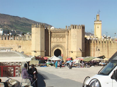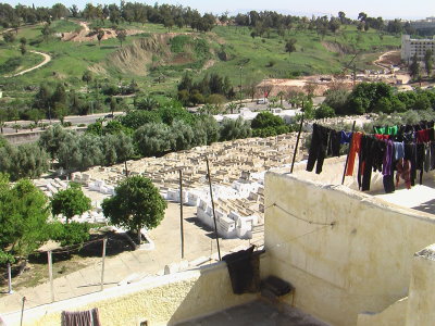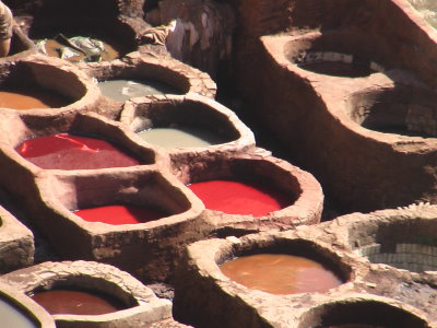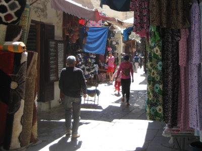 11. April 2011Heute hätten wir spät aufstehen können und richtig ausschlafen. Aber uns erwartete das Abenteuer, uns in den Souks von Fes allein zurecht zu finden.Unser Hauptziel waren die Gerber. Grob hatten wir uns die Soukkarte angeschaut und uns vorgenommen, nicht von breiten Hauptwegen abzuweichen. Tatsächlich schafften wir es schnell, vorbei an der Kairaraouine Moschee bis zum Place Seffarine, dem Platz der Kessel-, Kupfer- und Messingschmiede. Schon am frühen Morgen wird hier rundherum gehämmert und geklopft, dennoch ist dieser Platz für mich der Schönste, vielleicht wegen des riesigen Baumes in seiner Mitte - übrigens der einzige, den ich im Souk gesehen habe. Nun konnte es nicht mehr weit sein bis wir die alte Steinbrücke über den Oued Fes erreichen. Zu den Gerbern geht es am Fluss entlang, allerdings waren wir unsicher , auf welcher Seite des Flusses wir gehen mussten. Also hieß es fragen, und wenn man in Marokko jemanden fragt, bekommt man sofort einen Begleiter. Wir hätten eigentlich nur dem fürchterlichen Gestank nachgehen müssen, so aber wurden wir ohne Umwege ins Gerberviertel geführt. Natürlich wollte uns unser selbstloser Führer zu einem seiner "Freunde" ins Ledergeschäft schicken. Aber Ute war dabei, und sie hatte sich gemerkt, dass wir gestern ins Haus 16A gegangen waren, und so landeten wir wieder auf der Terrasse des Ledergeschäftes oberhalb der Gerbereien. Von hier oben hatten wir nun den richtigen Blick auf die ihrer schweren Arbeit, dem Gerben und Färben von Leder, nachgehenden Menschen ohne allzu sehr dem beißenden Geruch ausgesetzt zu sein. Ein bisschen pervers ist es schon, hier oben zu stehen, zu gaffen und Fotos zu machen, während andere sich ihre Gesundheit ruinieren - aber was wäre für den Touristen Fes ohne die farbigen Bilder aus dem Gerberviertel. Unsere nächste Aufgabe bestand nun darin, dem verkaufsorientierten Mitarbeiter des großen Lederwarengeschäftes klar zu machen, dass wir die Terrasse nutzten, ohne etwas kaufen zu wollen. Auf dem Rückweg mussten wir unbedingt durch die Kisseria, dem Souk für Textilien. Ich hatte gestern eine Jelaba gesehen und die wollte ich als Andenken mitnehmen . Tatsächlich, ich habe den Verkaufsstand wieder gefunden, und das Traumkleid nach intensivem Handeln wahrscheinlich immer noch zu teuer gekauft. Heute genossen wir den Gang vorbei an den vielen Lädchen, schauten uns die bunten Babuschen an, bewunderten die schönen Metalllampen, freuten uns über die kräftigen Farben der Tücher und waren erstaunt über die kostbaren Kaftane, die hier angeboten wurden. Was uns nicht klar war, wie Frau hier ein solches Kleidungsstück ersteht, denn zum Anprobieren sahen wir keine Möglichkeit. Inzwischen hatten wir uns auch an den Schrei "attention, attention" gewöhnt, der uns immer wieder zwang für vollbepackte Esel, überladene Handkarren oder Lasten tragende Menschen Platz zu machen. Das bunte Gewirr in den Gassen fing uns an, Spaß zu machen. Wir beobachteten verschleierte Frauen beim Einkauf, einige junge Mädchen in Jeans mit farbigen elegant gebundenen Kopftüchern. Die Mehrzahl der Frauen aber trug eine Jelaba und dazu ein passendes Kopftuch. An den Essständen allerdings sahen wir nur Männer, aber für uns war es kein Problem, dort unser Mittagessen einzukaufen: Es gab eingerollt in eine Art Pfannkuchen gegrilltes Hühnerfleisch mit Tomatensoße, dazu natürlich die obligatorischen Pommes frites (die gibt es hier zu fast jedem Essen). Nach einer kurzen Pause im Hotel machten wir uns zu viert auf nach Fes el Jdid. Wir wollten einen Blick auf den Königspalast werfen und dann in die Mellah, dem einstigen jüdischen Viertel, gehen. Dazu mussten wir erst den Souk von Fés el Jdid durchqueren. Eigentlich hatten wir für heute genug Souk gesehen, mussten dann aber feststellen, dass dieser hier erstens viel preiswerter und außerdem das Warenangebot ganz anders ist. Es wird viel europäische Kleidung angeboten und der Buchständer, den Ute in Fes el Bali für 100 Dirham hätte kaufen können, erwarb sie hier für 35 Dirham. Auch das Obst, das wir vor dem Bab Semmarin kauften, kostete nur die Hälfte des Preises, den wir am Vormittag gesehen hatten. Übrigens, bei Lebensmitteln wird nicht gehandelt. Nach einem kurzen Blick auf das Haupttor des Königspalastes, auf das eine gerade breite mit Palmen bepflanzte Straße führt, suchten wir in dem Straßengewirr der Mellah die Synagoge. Niemand schien zu wissen, wo das jüdische Gotteshaus zu finden ist. Schließlich landeten wir in einer kleinen dunklen Gasse und wurden dort zur Besichtigung der Synagoge eingeladen. Sie bestand aus einem ärmlicher Raum, mit dem Schrank für die Thora und der Galerie, die bei der Andacht den Frauen vorbehalten war. Wir durften auf den Dachgarten steigen und konnten nun auf den alten jüdischen Friedhof blicken, für dessen Besichtigung wir am Anfang unseres Rundganges Geld zahlen sollten. Auf dem Weg zurück wollten wir durch den Jardin de Boujeloud gehen, aber er war verschlossen, und so konnten wir nur durch die hohen schmiedeeisernen Tore in den schattigen Garten schauen. Also gingen wir an der Stadtmauer entlang bis zum Bab el Mahrouk, einem beeindruckenden trutzigen Stadttor, und dann mit kurzem Stopp zum Wasserkaufen zum Hotel. Abends hatten wir keine Lust, das Hotel zu verlassen. Bei leckerem Essen und einer Flasche marokkanischen Wein im Hotelrestaurant konnten gemütlich unsere "Abenteuer Fes" ausklingen lassen. |
