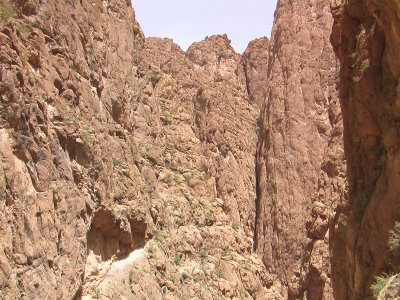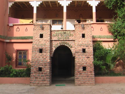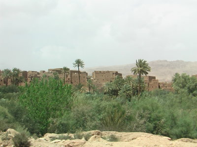 15. April 2011Zwar gab es einen richtigen Waschraum, aber wir beschränkten unsere Toilette auf das Notwendigste, Zähne putzen und einmal mit Wasser quer über das Gesicht. Den Sand in unseren Haaren ignorierten wir. Es war noch schummerig, aber das "Badezimmer" erhellte eine batteriebetriebene LED-Leuchte in Form einer Karbidlampe.Echter Luxus war das Frühstück. Es wurde mit Quads, vom Wüstenhotel herangeschafft. Gegen 8 Uhr kamen auch die Kamele und es ging wieder bis zum Hotel. Dort standen unsere Geländewagen bereit. In holpriger Fahrt fuhren wir zurück nach Erfoud. Mohammed wartete schon in seinem frisch gepflegten Bus auf uns. Wir brachen sofort auf, denn am Abend mussten wir in der Dadesschlucht, in unserem Berberhotel sein. Wir fuhren zurück durch das Ziztal, es gilt als die größte Palmenoase Marokkos. Obwohl wir die Farben der Landschaft schon gewohnt waren, faszinierte doch immer wieder der Gegensatz: die grünen Palmen, die rostroten Lehmhäuser und die schroffen Bergen, die grün, braun, rot oder mit Wüstenlach überzogen sogar schwarz sein konnten. In Ar Rachidia verließen wir das fruchtbare Flusstal und fuhren auf der Straße der Kasbahs. Auffallend waren in der Steinwüste unnatürliche kegelförmige Erhöhungen. Es waren Khatteras, Zugänge zu einem unterirdischen Kanalsystem. Sie sind heute zum großen Teil versandet. Bevor wir den Abstecher in die Todraschlucht machten, stoppten wir in Tinejdad. Ein an der Straße stehender Hubschrauber hat uns neugierig gemacht. Er war umlagert von jungen Menschen, auffallend waren die vielen Fahrradfahrer. Wir allerdings beschränkten uns auf die Bewunderung eines jungen Kamels, das äußerst fotogen oberhalb der Oasenstadt angebunden war. In der Todra Schlucht reichte die Zeit nur für einen kurzen Spaziergang auf der geteerten Straße oder im steinigen Flussbett. Es wäre schon spannend gewesen tiefer hinein zu fahren, aber einen kleinen Eindruck von der Enge und den gewaltigen kahlen Felswänden bekamen wir. Beim Verlassen der Schlucht machten wir in Teneghir einen Stopp. Die Stadt liegt mitten in einer Oase. Sie ist groß, so fiel es uns nicht schwer, in einer der belebten Gassen einen Stand zu finden, an dem wir ein leckeres Sandwich kauften. Gestärkt ging unsere Fahrt weiter auf der Straße der Kasbahs. Sie verläuft zwischen den Bergketten des Hohen Atlas und des Anti Atlas auf einer Hochebene. Zwischen steppenartigem Bewuchs und saftig grünen Oasen wechselt das Landschaftsbild. Nicht an allen der schönen alten Kasbahs konnten wir anhalten, auch an den grasenden Kamelherden, die sicher ein schönes Fotomotiv gegeben hätten, fuhren wir vorbei. Schließlich erreichten wir in die Dadesschlucht. Sie ist wegen ihrer großartigen Landschaft ein touristischer Höhepunkt jeder Marokkorundreise, das zeigt sich auch an der Vielzahl der Berberhotels. Unseres erreichten wir spät. Es langte gerade noch für ein Abendessen und einem anschließenden Spaziergang - der allerdings schon im Dunklen. So fiel er nur kurz aus. Jedenfalls brachten wir noch in Erfahrung, wo es die nächste Möglichkeit zum Wasserkauf gab. |