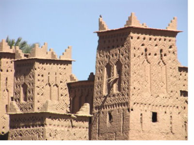 17. April 2011Nach unserer gestrigen Wanderung in der Dadesschlucht fuhren wir heute um 8 Uhr weiter. Unser Ziel war Zagora, eine Wüstenstadt jenseits des Anti Atlas. Bis Quarzazate folgten wir dem Dades auf der Route der Kasbahs. Vor unserer Abfahrt reichte die Zeit gerade noch festzustellen, dass der Fluss genau wie gestern morgen wieder sauberes, klares Wasser führte. Wovon allerdings die rote Farbe von kam, konnten wir nicht klären. Entweder sind es tatsächlich nur Erdarbeiten und Teile des roten Felsgesteins färbten den Fluss oder oberhalb der Schlucht wurde Leder oder Wolle eingefärbt. Jedenfalls war ich beruhigt, denn ich dachte schon, ich könnte meinen Augen nicht trauen.Es war schon früh sehr warm, aber wir haben eine Klimaanlage im Auto, so konnten wir bei wunderbarem Morgenlicht auf die Felder entlang des Dades schauen. Die kunstvoll angelegten Bewässerungsgräben sorgen für das satte Grün, das einen wunderbaren Kontrast zu den rostroten Bergen bildet. Die rötliche Farbe haben auch die Häuser, wir müssen sehr genau hinschauen, um die zum Teil verfallenen zum Teil aufwendig in Hotels umgebauten Kasbahs zu entdecken. Wir fuhren bei Boumaine wieder auf die gut ausgebaute Nationalstraße bis El-KelaaM'Gouna, der Rosenstadt. Leider sind wir einen Monat zu früh hier, noch blühten die Rosen nur vereinzelt, aber an ihrem starken Geruch konnten wir ahnen, wie es hier im Mai duften wird. Etwas außerhalb der Stadt liegt die Kashba Amridil, Wir werden an den Bewässerungsgräben entlang durch die Felder, vorbei an Dattelpalmen und Granatapfelbäumen geführt. Ein Marabouts, das Grabmal eines heiligen Mannes war das erste Bauwerk, das wir sahen, bevor wir plötzlich vor der riesigen Kasbah standen. Ein Teil ist in ein Hotel umgewandelt, durch den anderen konnten wir geführt herumsteigen und so von nahem die schönen Ornamente an dem Lehmbau bestaunen. Inzwischen war die Temperatur auf 37 Grad gestiegen, deshalb wären wir gerne in dem schattigen Innenhof geblieben, aber wir mussten weiter. . Der Dades mündet in einen riesigen Stausee, der sich über 20 km bis Quarzazate erstreckt. Am Rande der Stadt steht die eindrucksvolle KasbahTaourit. Sie liegt auf einer trockenen Hochebene auf 1160m Höhe zwischen dem noch verschneiten Hohen Atlas und dem Antiatlas. Die historische Kasbah war häufiger Kulisse für Historienfilme, die hier zusammen mit den ansässigen Filmstudios gedreht wurden. Ein Teil der Räume, die sich hinter den dicken Stampflehmmauern verbergen, ist noch bewohnt. Die Räume des Paschas von Marakkesch, Thami El Haouzi, haben wir besichtigt. Von der einst prunkvollen Ausstattung ist allerdings nur noch wenig erhalten geblieben. Auf der gut ausgebauten Nationalstraße durchqueren wir die beeindruckende Bergwelt der Ausläufer des Antiatlas. Die Farbe der Berge wechselt von schwarz über dunkles Rostrot bis zu leicht grünlichen Tönen. Unser Fahrer hat heute einen sehr harten Tag, aber er lenkt unseren Bus sicher durch die vielen Kurven. 60 km vor Zagora verläuft die Straße parallel zum Draa, dem Fluss, der aus dem Staubecken bei Quarzazate gespeist wird. Sein Wasser füllt die Bewässerungskanäle für die Oasen, so wachsen im ganzen Flusstal stattliche Dattelpalmen. < br> Eine unerwartet breite Straße mit moderner Straßenbeleuchtung führt vorbei an vielen neuen Häusern bis in das Zentrum von Zagora. Wir waren froh, an unserem Ziel angekommen zu sein. Das Hotel Ksar Tisouline hat einen schönen Innenhof, und wir konnten am Pool ein wenig entspannen und den heutigen Tag an uns vorbeiziehen lassen. Noch immer war es recht warm, so freuten wir uns über den aufkommenden Wind. |