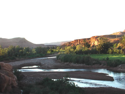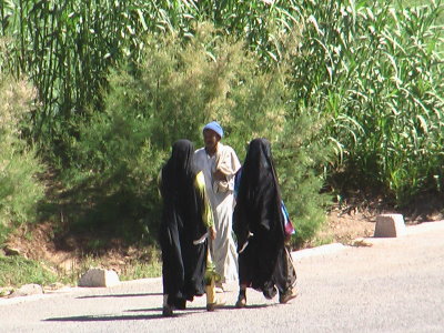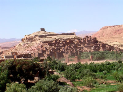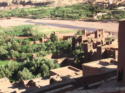 19. April 2011Letzte Nacht hatte es geregnet. Der Staub war von den Blättern geputzt und die Luft herrlich frisch. Obwohl wir bis Quarzazate auf derselben Straße zurück fuhren, wirkte die Landschaft im Morgenlicht ganz anders. Die Sicht war klar, in der Ferne sahen wir die schneebedeckten Gipfel des Hohen Atlas. Wir fuhren entlang der Draa. Die grünen Blätter der Palmenoase entlang des Flusses bildeten einen schönen Kontrast zu den roten Felswänden und den Dörfern auf der anderen Seite der Straße.Um 10 Uhr hielten wir in einem kleinen Marktort. Hier gab es keine Touristen, wir wurden von den Menschen offensichtlich als störend empfunden. Aber auch wir fühlten uns wie Eindringlinge in diese Welt - aber spannend war sie doch. So hätten wir auch gern von der Nomadenfamilie, die mit ihren vollbepackten Kamelen die Straße querte, im Foto festgehalten. Sie bot für uns eben ein buntes exotisches Bild . Unser Fahrer Mohammed kaufte riesige Mengen an Obst und Gemüse. Wie wir bald merkten, war es Obst für seine Familie; denn er war von der befestigten Straße abgebogen und hielt nach einer Fahrt über staubige Pisten vor einem Berberhaus. Wir waren eingeladen und wurden von seinem Vater freundlich begrüßt. In ihrem Wohnzimmer, dessen Wände terrakottafarben gestrichen waren, nahmen wir auf den Kissen um zwei kleine Tische Platz. Nachdem uns Mohammed seine Mutter und seine Schwestern vorgestellt hatte, begann er mit der Teezeremonie. Die Frauen zogen sich zurück bis sie uns offensichtlich etwas verlegen die Teller mit dem Couscous servierten. In einem Berberhaus, bei einer Familie mit hausgemachtem Couscous überrascht zu werden, war für uns alle ein in Erinnerung bleibendes Erlebnis. Nun war es nicht mehr weit bis zu unserem Hotel in Ait Ben Hadou. Ait Ben Hadou ist das wohl eindrucksvollste Stampflehmdorf Marokkos. Es diente als Kulisse für Historienfilme. Erst als wir über die Sandsäcke den Fluss überquert hatten, bemerkten wir die andere Struktur des monumentalen Tores am Eingang der Stadt. Es wurde als Kulisse für den amerikanischen Spielfilm 'Sodom und Gomorrha' aufgebaut. Der Rest des Dorfes ist original. Es besteht aus vielen kleineren und größeren Häusern, die eng aneinander gedrängt an einem Hang kleben. An den Türmen sind die typischen Berberornamente eingeritzt oder es entsteht eine Verzierung durch unterschiedliches vermauern der Lehmziegel. Wir hatten gehört, dass einige Häuser noch bewohnt sind und gegen ein kleines Entgeld besichtigt werden können. Das nutzten wir und begaben uns durch dunkle Gänge und über die steilen Steinstufen durch das spärlich eingerichtete Haus. Das Schönste war der eindrucksvolle Blick von der Dachterrasse über das Tal des Asif Mellah. Im Haus gab es nur einen mit einer Glühlampe erleuchteten Raum, neben der traditionellen Küche hatte die Familie eine moderne Küche, die uns der Hausherr stolz vorführte - was allerdings modern war, konnten wir nicht erkennen. Die Hühner und zwei Ziegen waren ebenfalls im Haus untergebracht, ein Lichtschacht sorgte dafür, dass der Tiergeruch abzog. Für uns war es kaum vorstellbar, dass die Familie hier wirklich wohnte - aber wer weiß. Wir gingen durch die schmalen "Sträßchen" und steilen Treppen bis auf den höchsten Punkt des Dorfes. Andenkenverkäufer haben den Ort fest im Griff, dennoch war das Herumkraxeln in diesem von der UNESCO geschützten alten Lehmdorf für uns spannend. Erst als die Sonne schon fast untergegangen war, stiegen wir hinab ins Tal. Zum Abendessen gab es zu unserem Hotel keine Alternative, so mussten wir uns mit der geschmacklosesten Suppe abfinden, die wir bisher in Marokko bekommen hatten - und teuer war sie auch noch! |