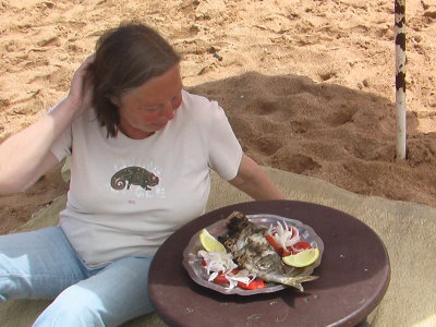 24. April 2011Unser Fahrer fuhr von Essaouria auf der schönen R 301 direkt am Atlantik entlang nach Casablanca.Anfangs ist die Straße noch 4-spurig ausgebaut. Dann aber wird sie schmal. Kurvenreich schlängelt sie sich oberhalb des Atlantiks entlang. Sie führt durch eine hügelige Landschaft, durch Tujawälder mit viel Lavendel als Unterwuchs. Immer wieder gibt es zwischen schöne Durchblicke auf leere Sandstrände und das Meer. Vorbei an Agaven mit riesigen Blütenständen durchfahren wir eine herrliche Dünenlandschaft. Es brauten sich dunkle Wolken zusammen, wir konnten kaum die hohen Schornsteine des Industriegebiets von Safi erkennen. Nun fing es an zu regnen. Die Straßen der Stadt haben offensichtlich keine Abwasserkanäle, es bilden sich riesige Pfützen. Sonst macht Safi einen recht aufgeräumten Eindruck, nur der Geruch der Phosphate ist ziemlich unangenehm. Wir fuhren weiter oberhalb der Steilküste. Mohammed musste sich sehr konzentrieren, es schüttete nun mächtig. Aber wir hatten Glück, als wir in El Qualidia anhielten, hatte es aufgehört zu regnen, und wir konnten hinunter zum Strand. Dort wurden gerade die improvisierten Grillplätze aufgebaut. Es war Mittag und so entschlossen wir uns, am Strand Doraden für uns braten zu lassen. Wir bekamen einen Platz auf einer Strohmatte unter einen Sonnenschirm zugewiesen und harrten mit Blick auf das Meer, das gegen die steilen Felsen krachte, auf das, was nun kommen sollte. Es kamen als erstes ein kleines rundes Tischchen, der Salat und das Brot. Dann wurden uns unsere Doraden heiß und knusprig serviert. Die Fische waren diesmal richtig lecker. Nach unserem üppigen Mahl hatten wir noch Zeit am Meer und der Lagune, in der fleißig gebadet wurde, entlang zu spazieren. Schade, dass uns die Zeit fehlte, hier einige Tage zu entspannen - El Qualidia ist ein richtig schöner Urlaubsort. Das scheinen aber hauptsächlich die Marokkaner zu wissen. Das Verlassen des Ortes war für Mohammed recht mühsam, auf der Straße wurde heftig gebaut. Wir fuhren wieder oberhalb der steilen Küste. So konnten wir sehen, dass auf dem Landstreifen zwischen Meer und Lagune Felder angelegt waren. Wir kamen vorbei an Zuchtbecken für Fische und an großen Feldern zur Salzgewinnung. Die Pflanzen auf den Feldern der landwärts gelegenen Seite der Straße waren durch Rietzäune vom Wind geschützt. Zur Unterhaltung hatte Mohammed eine sehr schöne CD aufgelegt, so erreichten wir gut gelaunt um 14 Uhr El Jadida, eine alte portugiesische Festungsstadt. Die ehemaligen Befestigungsanlagen wurden 2004 zum UNESCO Kulturerbe erhoben. Sie umschließen auch ein kleines Hafenbecken. Leider hatten wir nur wenig Zeit auf der Festung herum zu klettern. Wir wollten noch die Cisterne Portugaise, ein ehemaliges Waffenlager, das später als Wasserspeicher genutzt wurde, besichtigen. Es war die erste Zisterne, die ich gesehen habe, sie ist nicht groß. Die hohen Bogengewölbe sind auf Pfeilern gelagert. Die Spiegelungen im Wasser bei der geschickten Beleuchtung wirken mystisch. Vor der Abfahrt haben wir Zeit genug hinter dem Markt in einem kleinen Café einen Avocadosaft zu trinken. Vor der Befestigungsmauer wurde schnell noch ein Gruppenfoto zur Erinnerung gemacht, dann brachen wir zur letzten Etappe unserer Marokkorundfahrt auf. Es war schon dunkel, als wir in unserem Hotel in Casablanca ankamen. Zum Abendessen blieb uns nur das kleine moderne Restaurant gegenüber dem Hotel. Gegen 2 Uhr nachts ging es zum Flughafen, so konnten die angemieteten Zimmer kaum genutzt werden. Am Flughafen verabschiedeten wir uns dankbar von unserem Fahrer Mohammed. Er hatte uns sicher und souverän durch Marokko chauffiert, war immer nett und freundlich und hatte uns mit dem Besuch bei seiner Familie ein wenig in das marokkanische Familienleben blicken lassen. Am nächsten Morgen um 6 Uhr landeten wir in Frankfurt. |